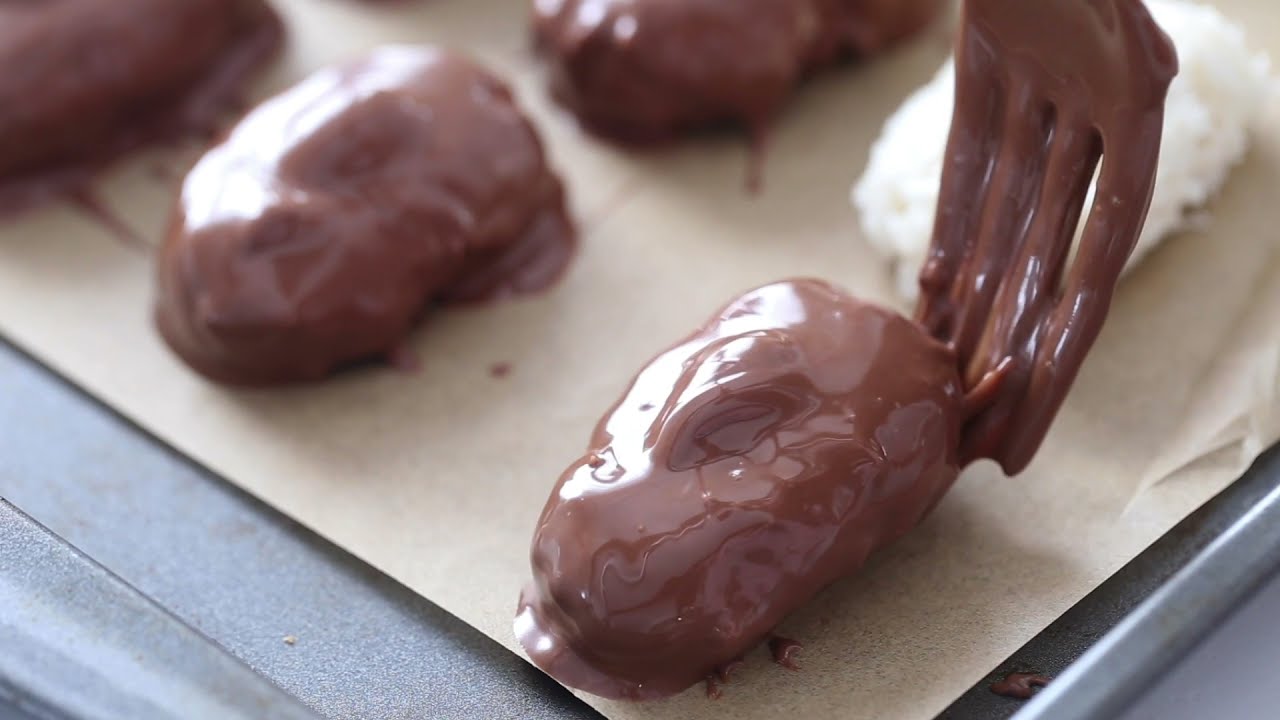 - Each coconut ball should be dipped into the melted chocolate mixture as well as coated completely using a fork or other dipping implement