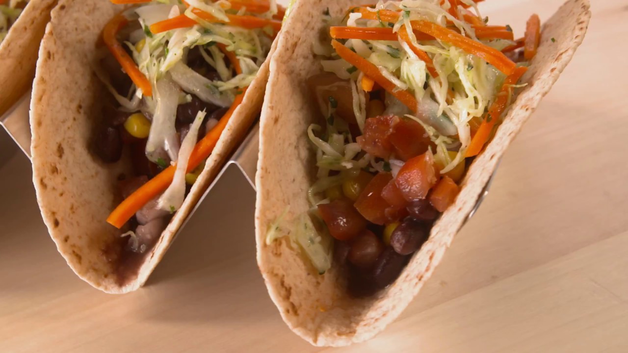 Vegetarian tacos – loaded down with smoky courgette, lively dark beans, salted red onion, and velvety avocado – also create a splendid lighter supper that the entire family can get into.